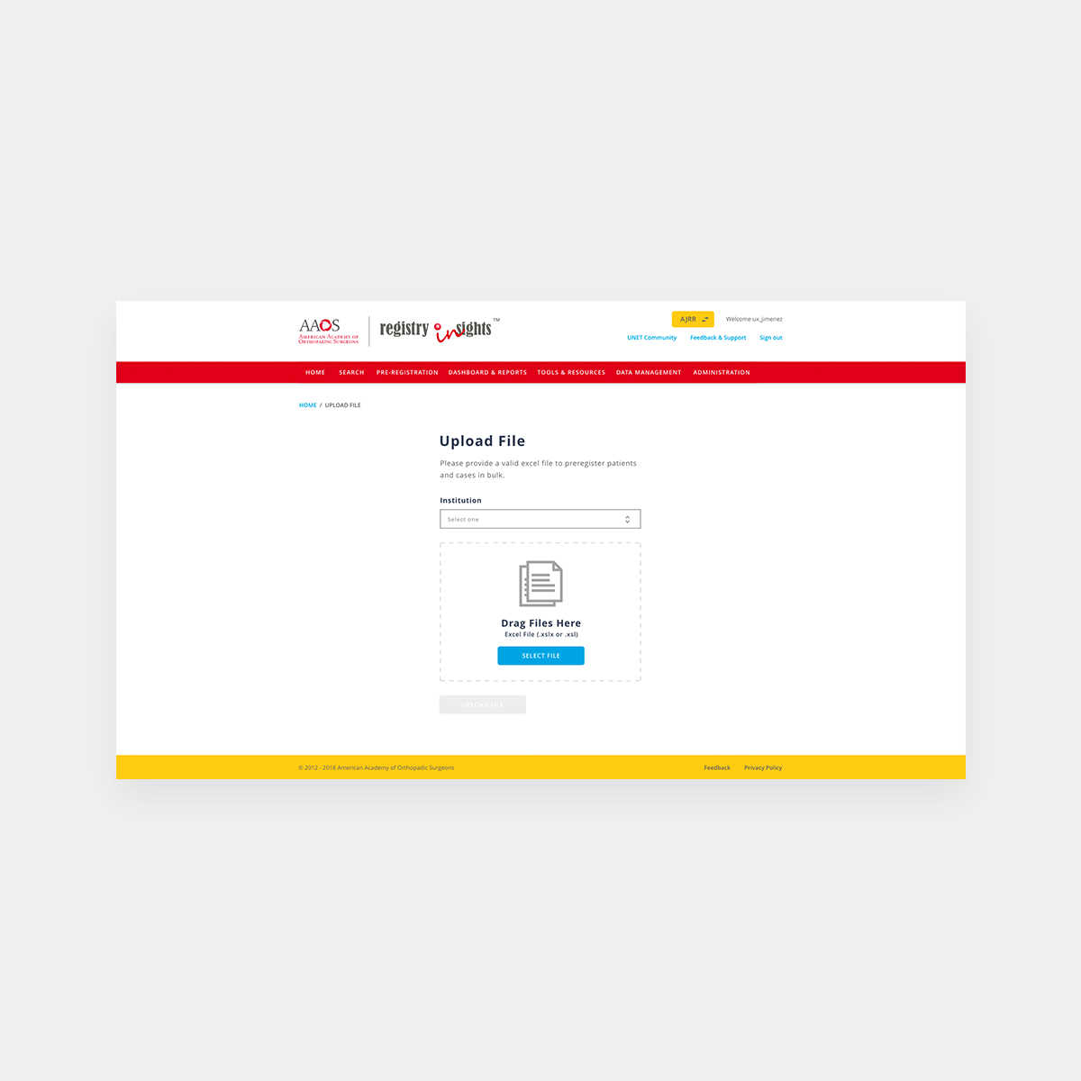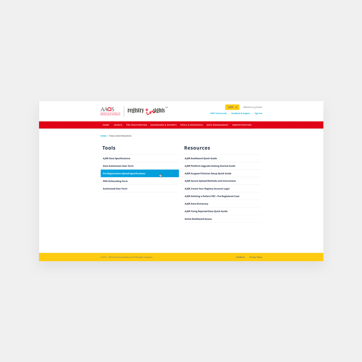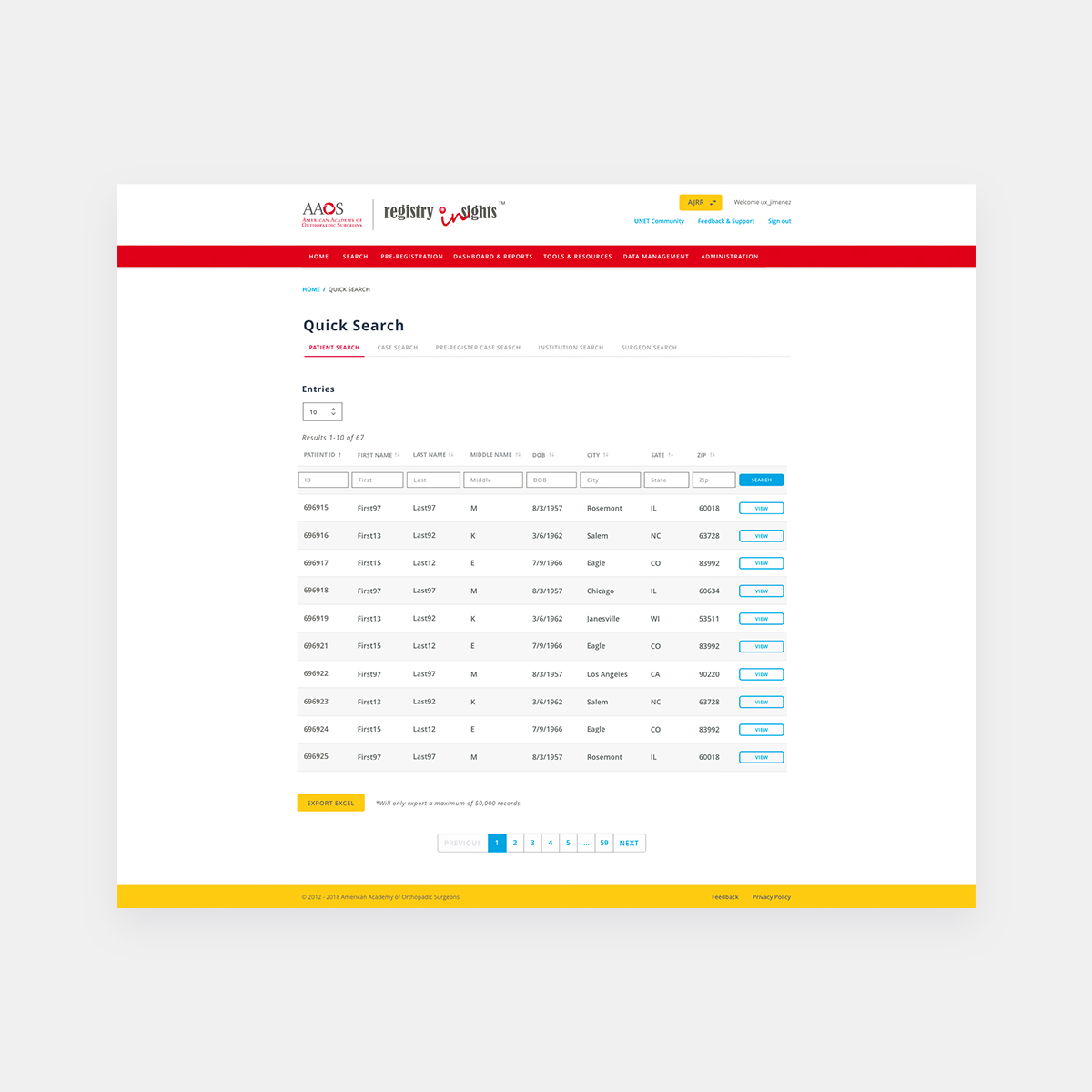 AAOS Registries are built on technology that allows your facility access to all of your AAOS-enrolled orthopaedic registries in one place. Subscribers can use the AAOS RegistryInsights® platform to run standard reports and use the dashboards to compare their institution to national benchmarks. In addition to procedural data dashboards, RegistryInsights offers a portal for the implementation and reporting of patient surveys. An added benefit is the ability to view issues with the files your institution uploaded, allowing for more accurate and relevant data in the Registry. And best of all, you can get access to your data within 48 hours of submission.